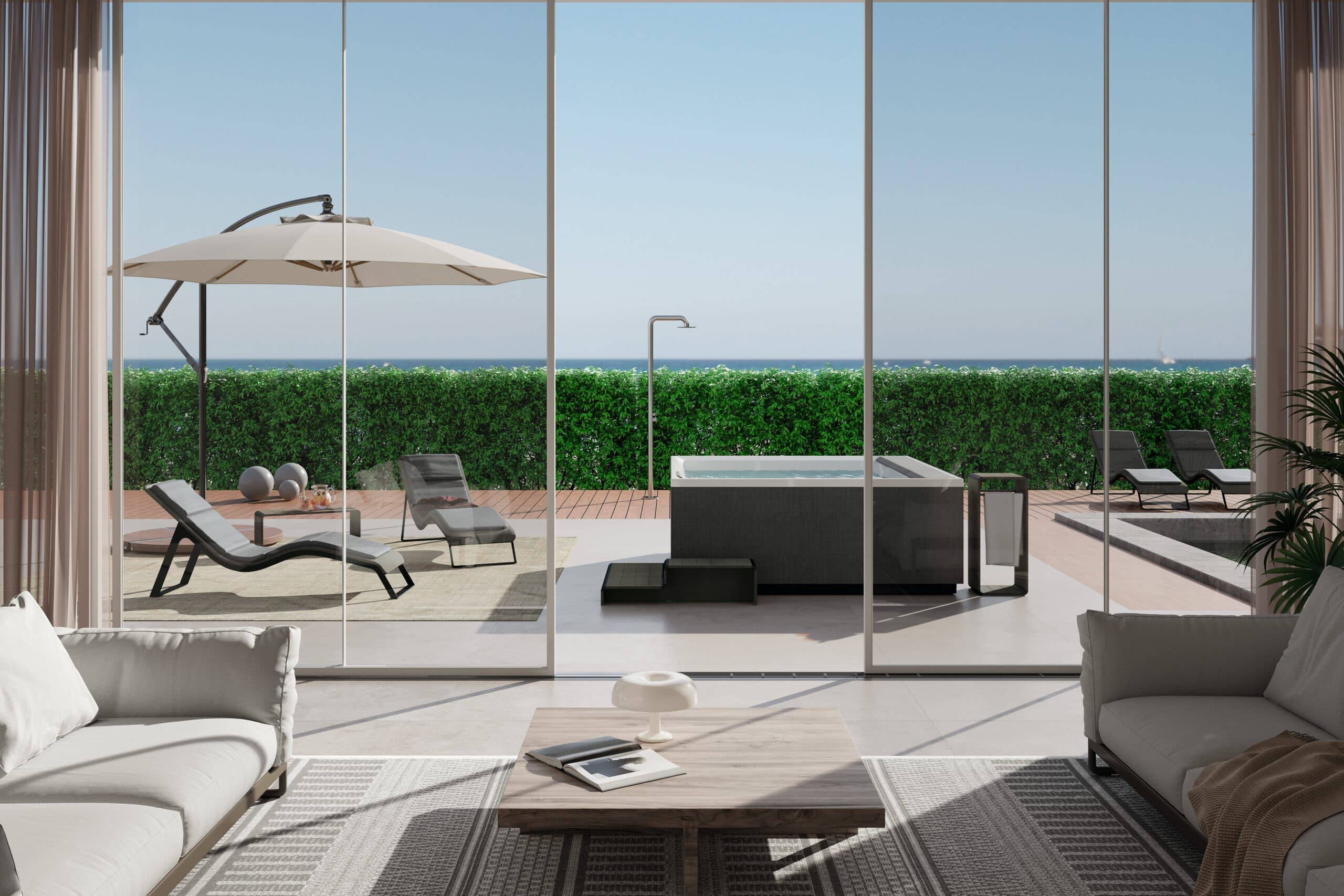 Glazen wanden zijn lichtdoorlatend en verkrijgbaar in verschillende kleuren zoals grijsrookglas, brons, zwart en melkwit. Voor een extra vleugje luxe wordt aangeraden om de glazen wand vanaf de vloer tot aan het plafond te laten doorlopen.
